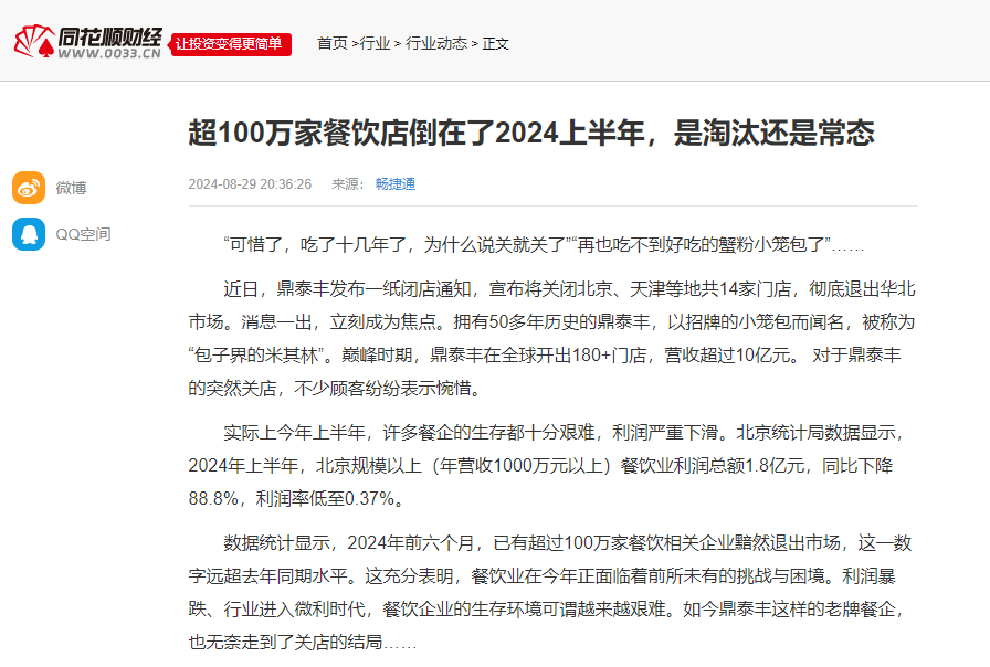 仅2024年上半年,餐饮行业,关门的就超过100万家!